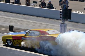 In B/Gas, Boyd Ferry's '74 Camaro with a 632cu in engine faced Casey Treur's '33 Willys powered by a 565cu in Chevy.