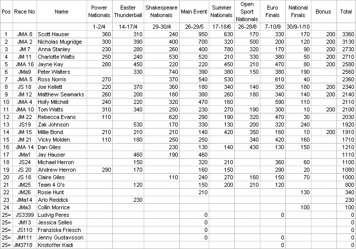 2006 U.K. NATIONAL CHAMPIONSHIP JUNIOR DRAGSTER FINAL STANDINGS