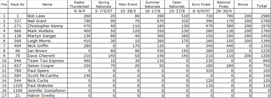 2007 U.K. NATIONAL CHAMPIONSHIP SUPER STREET FINAL STANDINGS