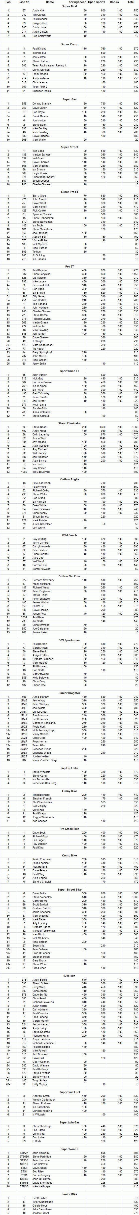 Points for ACU Drag Bike Championship classes made available