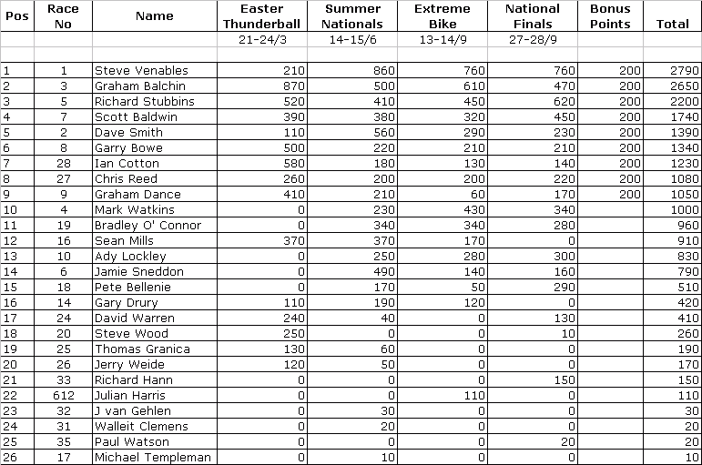 SUPER STREET BIKE FINAL STANDINGS