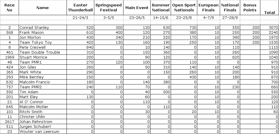 2008 U.K. NATIONAL CHAMPIONSHIP SUPER GAS FINAL STANDINGS