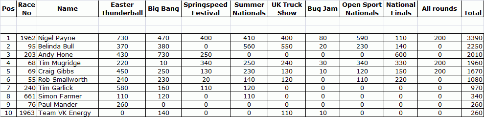 2009 U.K. NATIONAL CHAMPIONSHIP SUPER MODIFIED FINAL STANDINGS