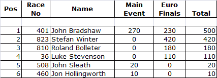 COMPETITION ELIMINATOR FINAL STANDINGS