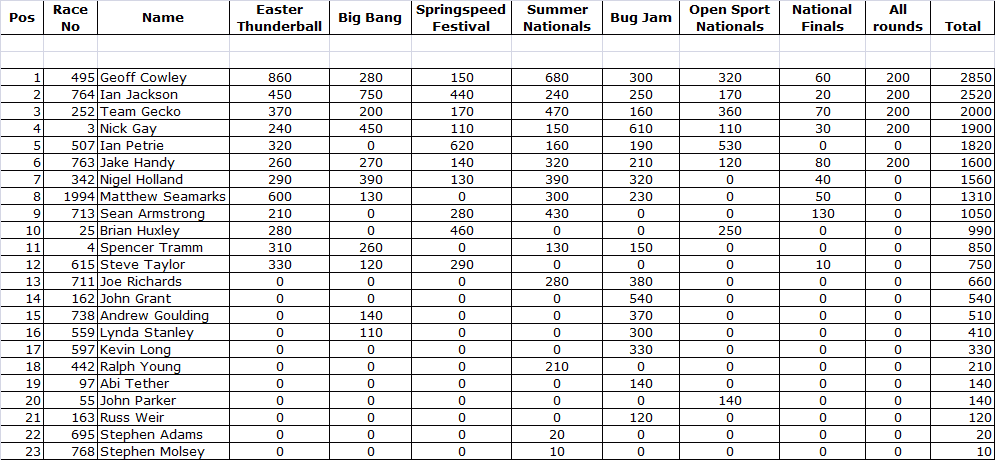 2010 U.K. NATIONAL CHAMPIONSHIP SPORTSMAN ET FINAL STANDINGS