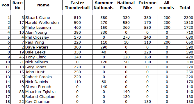 COMPETITION BIKE FINAL STANDINGS