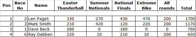 PRO STOCK BIKE FINAL STANDINGS