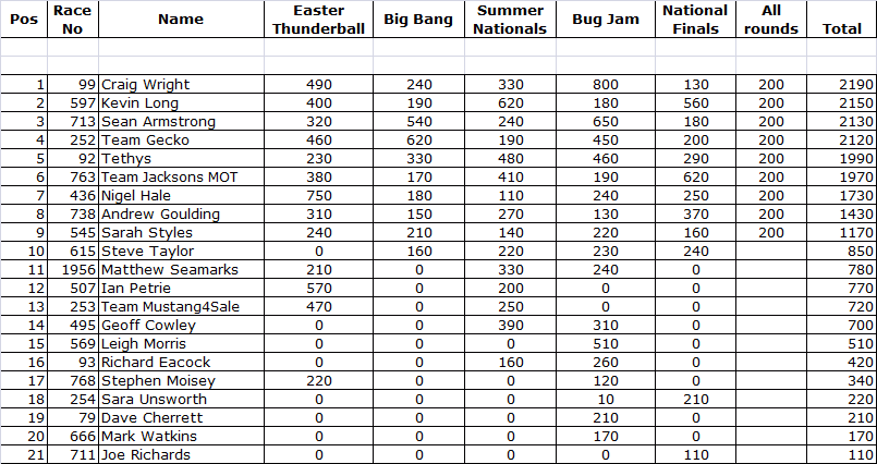 SPORTSMAN ET FINAL STANDINGS