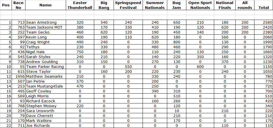 2011 U.K. NATIONAL CHAMPIONSHIP SPORTSMAN ET FINAL STANDINGS