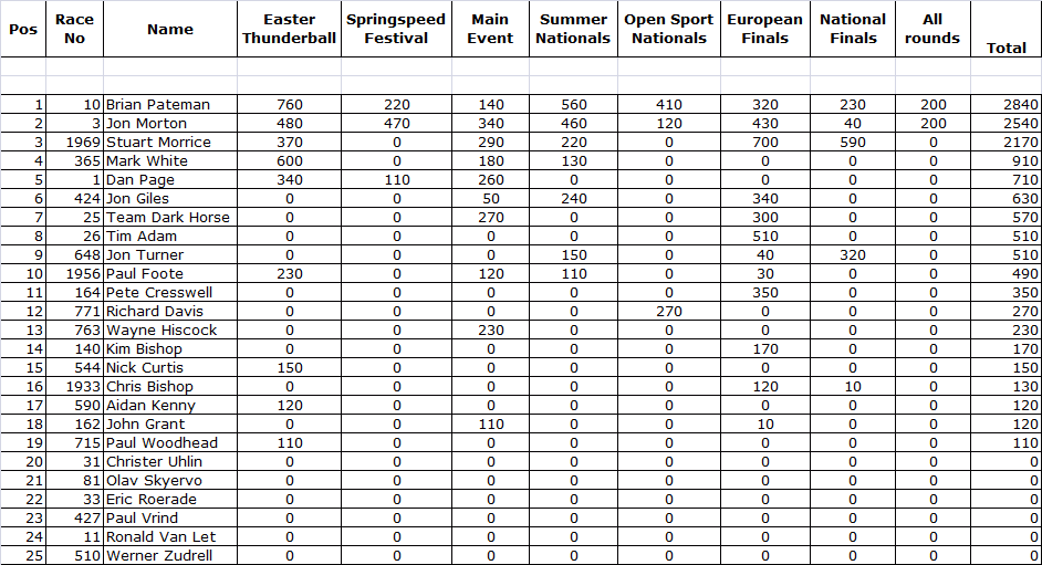 2011 U.K. NATIONAL CHAMPIONSHIP SUPER GAS FINAL STANDINGS