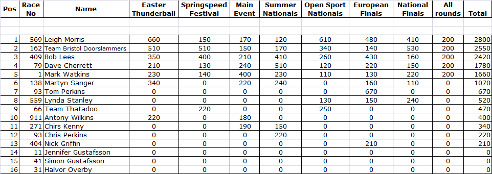 2011 U.K. NATIONAL CHAMPIONSHIP SUPER STREET FINAL STANDINGS