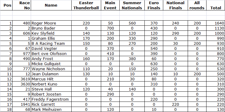 PRO MODIFIED FINAL STANDINGS