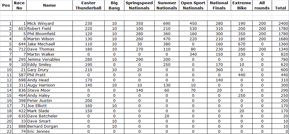 2012 U.K. NATIONAL CHAMPIONSHIP 8.50 BIKE CURRENT STANDINGS