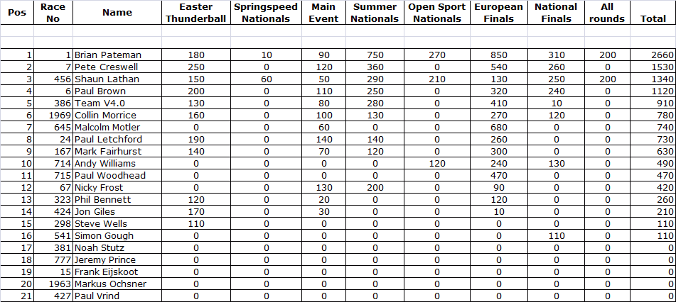 2012 U.K. NATIONAL CHAMPIONSHIP SUPER COMP FINAL STANDINGS