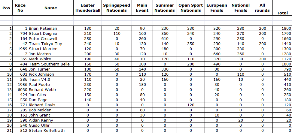 2012 U.K. NATIONAL CHAMPIONSHIP SUPER GAS FINAL STANDINGS