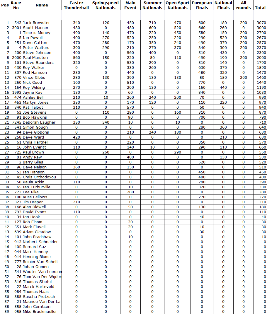 2012 U.K. NATIONAL CHAMPIONSHIP SUPER PRO ET FINAL STANDINGS