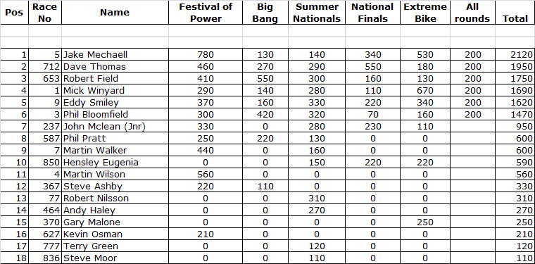 8.50 BIKE FINAL STANDINGS
