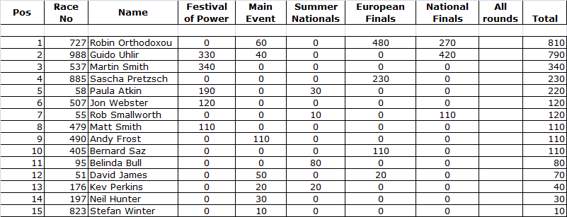 COMPETITION ELIMINATOR FINAL STANDINGS