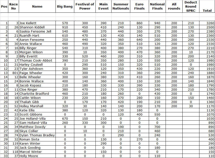 LUCAS OIL JUNIOR DRAGSTER FINAL STANDINGS