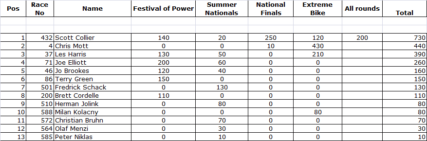 SUPER TWIN TOP GAS FINAL STANDINGS