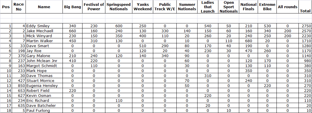 2014 U.K. NATIONAL CHAMPIONSHIP 8.50 BIKE FINAL STANDINGS