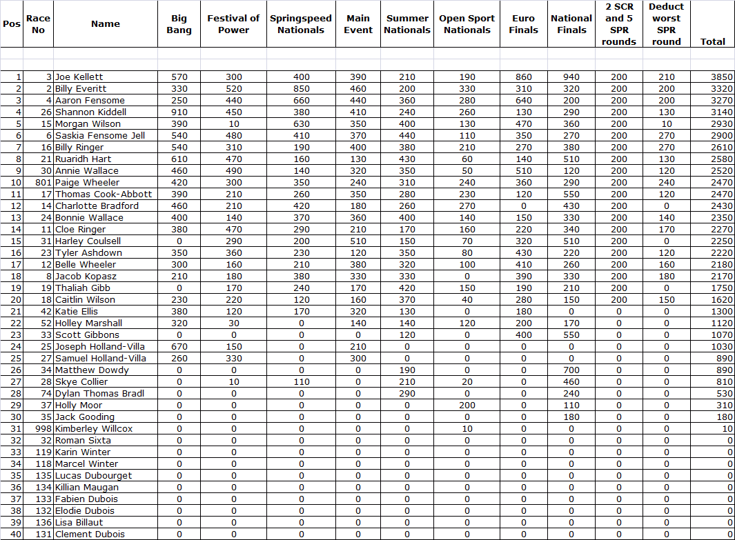 LUCAS OIL JUNIOR DRAGSTER FINAL STANDINGS