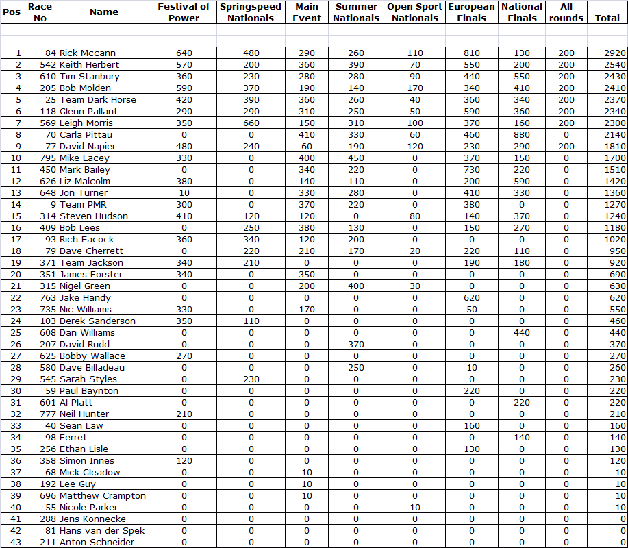 2014 U.K. NATIONAL CHAMPIONSHIP PRO ET FINAL STANDINGS