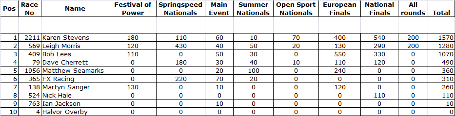 2014 U.K. NATIONAL CHAMPIONSHIP SUPER STREET FINAL STANDINGS