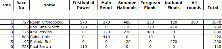 COMPETITION ELIMINATOR FINAL STANDINGS