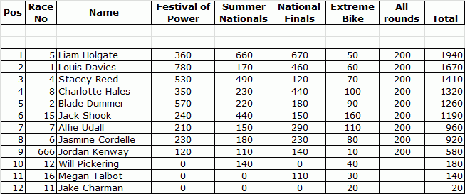JUNIOR DRAGBIKE FINAL STANDINGS