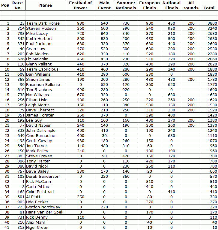 PRO ET FINAL STANDINGS