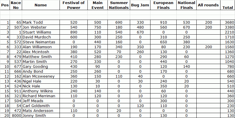 2014 SPRC CHAMPIONSHIP TOPSPEED AUTOMOTIVE STREET ELIMINATOR FINAL STANDINGS