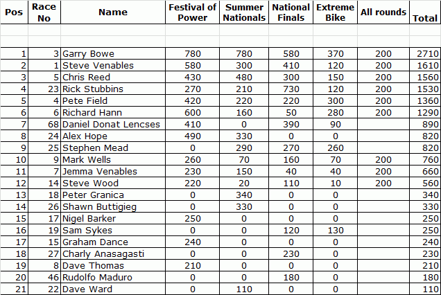 SUPER STREET BIKE FINAL STANDINGS