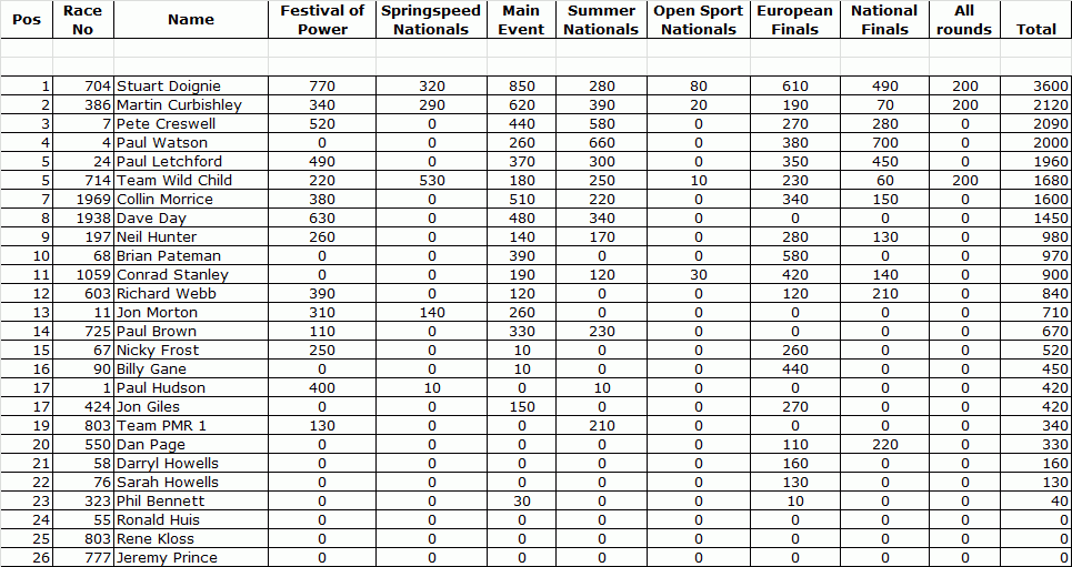 2015 U.K. NATIONAL CHAMPIONSHIP SUPER COMP FINAL STANDINGS