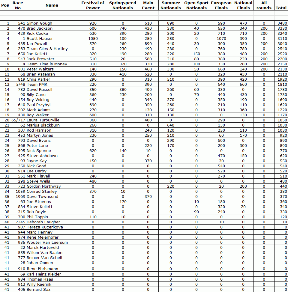 2015 U.K. NATIONAL CHAMPIONSHIP SUPER PRO ET FINAL STANDINGS