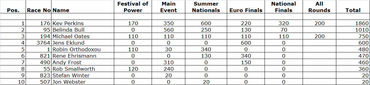 COMPETITION ELIMINATOR FINAL STANDINGS