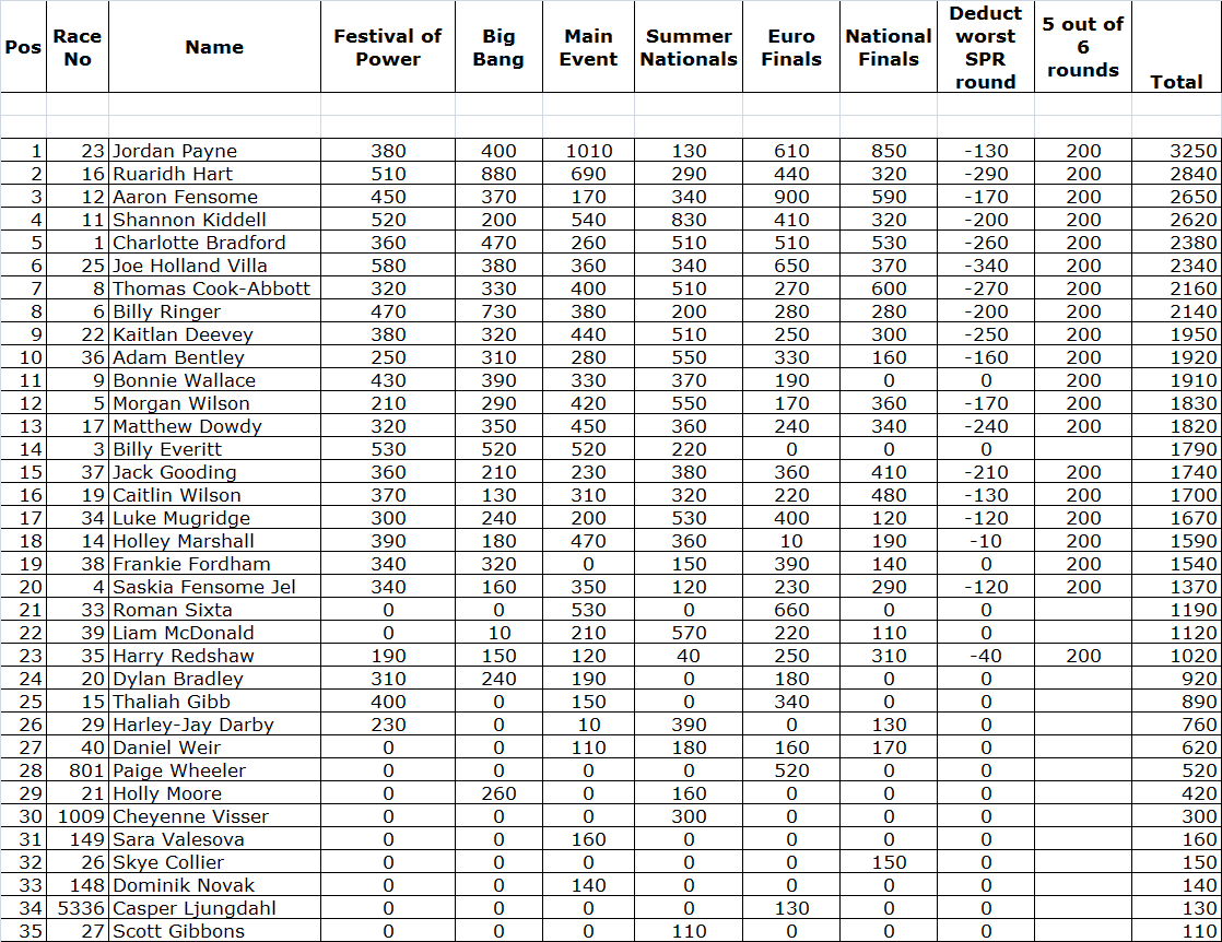 LUCAS OIL JUNIOR DRAGSTER FINAL STANDINGS
