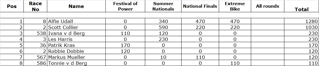 SUPER TWIN TOP GAS FINAL STANDINGS
