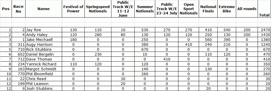 2016 U.K. NATIONAL CHAMPIONSHIP 8.50 BIKE FINAL STANDINGS