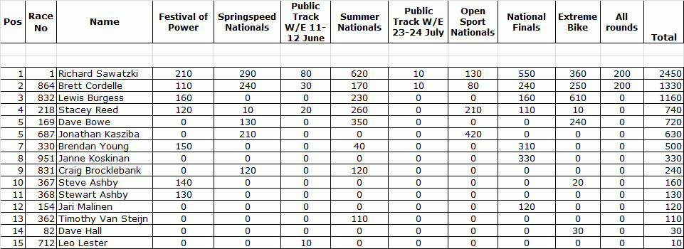 2016 U.K. NATIONAL CHAMPIONSHIP 9.50 BIKE FINAL STANDINGS