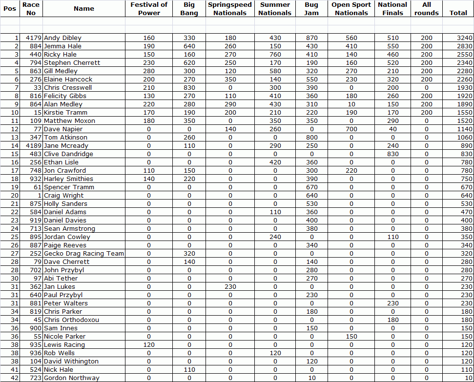 2016 U.K. NATIONAL CHAMPIONSHIP SPORTSMAN ET FINAL STANDINGS