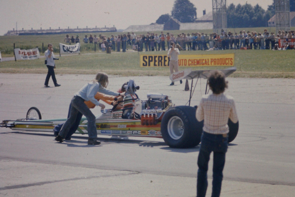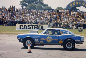 Following the Press and Practice Days the Silverstone Weekend got under way with the Daily Express Air Display on Saturday. Demonstration runs from Clive Skilton and Roland Pratt also took place. With all the press and TV ads, local press and radio interviews laid on by the NDRC, 8000 people turned out for the 24th June International; round 3 of the Castrol NDRC National Drag Racing Championship. General admission back then for a full days qualifying and eliminations was just £1 and 50p extra for a grandstand seat which if you were lucky enough to be seated in the Woodcote Corner stand then you had the perfect overview of looking straight down the strip as well as experiencing the burnout boxes!