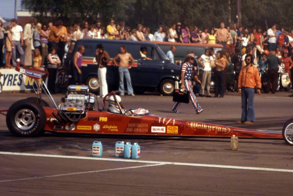 On 24th June 1973 the NDRC held its first International drag race at Silverstone circuit. Entries from Sweden and Germany attended and the status of the event attracted media from the BBC and a film crew who released their documentary movie as ‘Drag on a Summer’s Day’. The film company that produced the film for Castrol was Barrie Hinchcliffe, a well known name in motorsports films for his coverage of World and British Rallies transmitted on ITV's World of Sport and the BBC Grandstand, as well as the early British Touring Car Championship races seen on BBC Grandstand. The film can be downloaded at this link for a mere £3.99 (32p in 1973 money!).