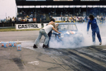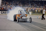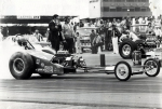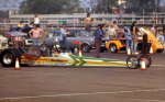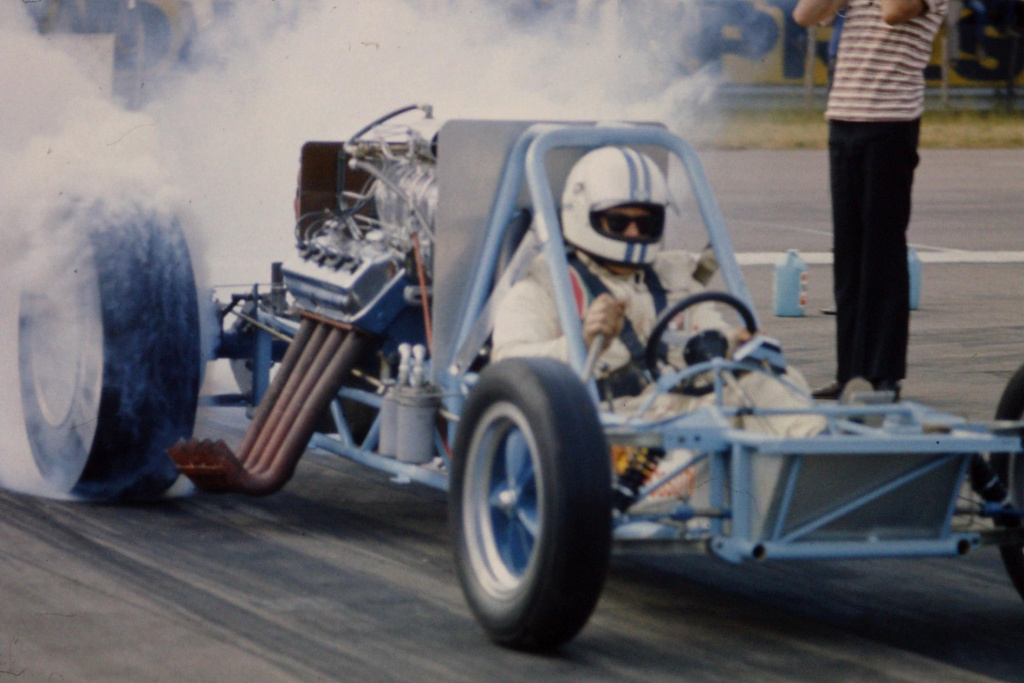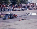 At the time Clive’s times in the third race, on a 80% nitro load, were very close to the UK records of 6.59 by Dennis Priddle and 218mph by Allan Herridge. In race two Clive suffered a broken fuel pump which slowed the car.