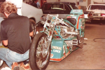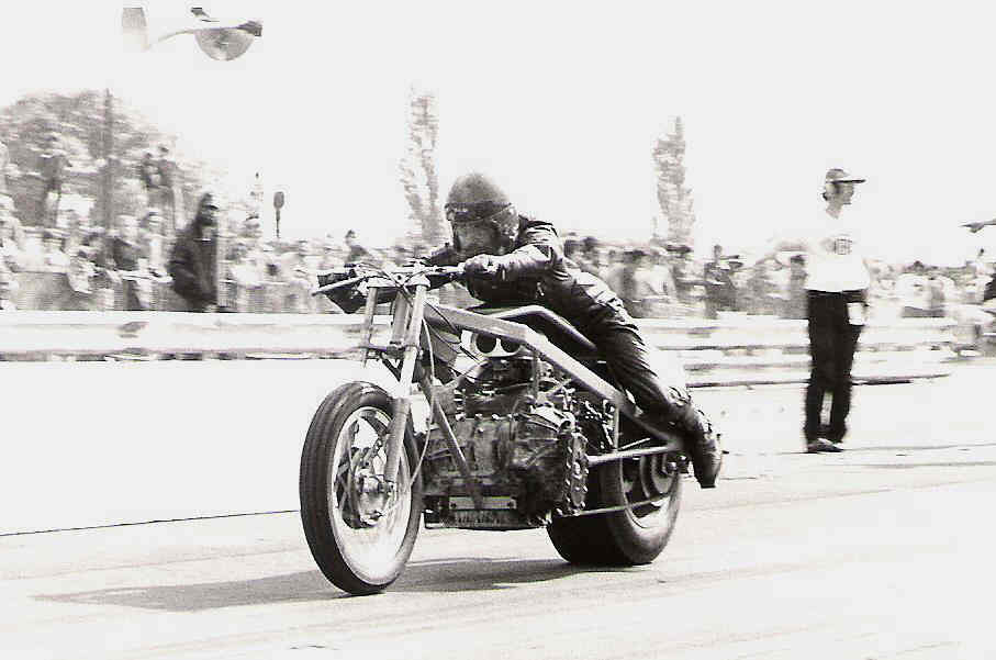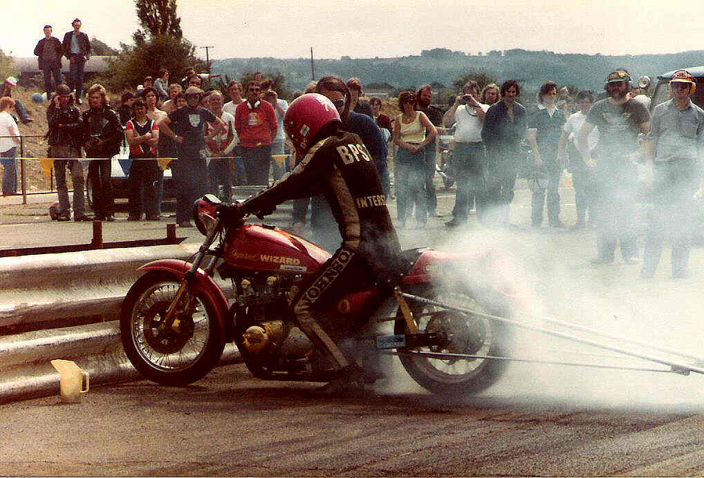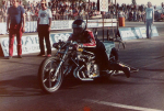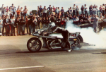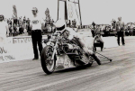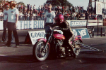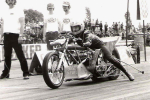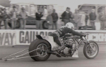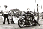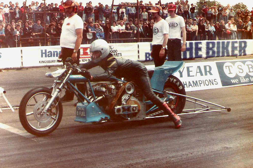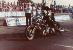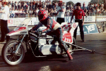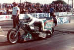Bo O’Brochta suffered cylinder head damage in qualifying and the same problem in the semi-final caused him to drop out of competition. Bo blamed a faulty cylinder head casting. His 7.83 was the quickest bike ET yet seen in the UK.
