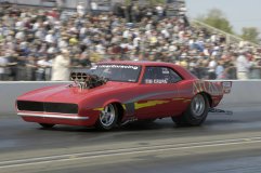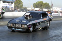 BB/Gas was a final between Tim 'TK' Krupa in his '67 Camaro and Gary Reinero in his comical looking '48 Austin and unfortunately Reinero had to be pushed away from behind the startline with problems leaving Tim Krupa an easy solo for the event title where a 6.817/202 did the job.