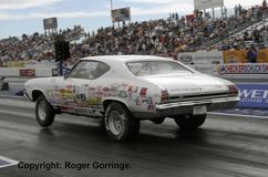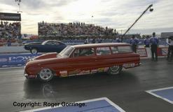 Toby Lang took the Stock Eliminator trophy with an 11.707/111 on an 11.69 dial-in in his '69 Chevelle as opponent, Bobby DeArmond fouled out with an under index 9.986/130 on a 9.99 dial-in. The numerous dragsters and full bodied cars in the Super Comp class battled it down to a run off between Steve Williams' dragster and the '02 Cavalier of Ken Mostowich and the better leave by Williams paid off as his 8.927/180 beat the 8.910/175. Super Gas had many a battle to get down to the money run and in the end it was fought between the '58 Corvette of Brad Pierce and the '63 Corvette of Tommy Turner. Pierce took a better leave and held on to take the trophy with a 9.933/142 that saw off the 9.948/153 from Turner. In the Super Street final it was the '63 Falcon station wagon of Ryan Smith that got the win light with a 10.965/122 that beat the