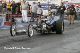In top spot in Nostalgia Eliminator 1 was Dale Taros with a 7.606/174 ahead of the forty-plus entry. The event win went to Bruce McDowell, an 8.089/134 beat the 7.879/158 from Mike Hoyt Sr. A twenty-plus 7.0 Pro field was led by Richard Phillips in a '32 Bantam with a 7.009 194 but it was Will Martin who took his Camaro Funny Car to the win with a 7.083/187 beating Joey Steckler's 8.508/114 in the final. Features and Interviews index Back to News page |