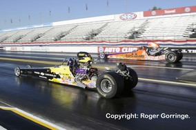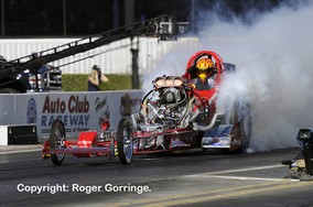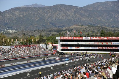 2010 NHRA Auto Club Finals The culmination of a year's competition in the NHRA Full Throttle Drag Racing Series was brought to a succession of dramatic bouts in the Countdown to the Championship in this the season wrapper. There was jubilation and heartbreak in equal amounts as point chases became closer, leads lost and Champions crowned. The calm, clear, mid seventy degree Fahrenheit conditions gave a comfortable environment for race teams and the multitudes of fans. Like the Las Vegas NHRA Nationals in October, it turned out to be an international affair with teams from three continents competing. Click on any picture for large version