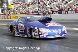 Opening round one was a red light from Vincent Nobile handing the win to Allen Johnson with a seen it 12.493/71 time. Kurt Johnson managed a 6.611/209 win as Shane Gray red lit. Greg Stanfield put down a 6.595/209 to take the win against Larry Morgans 6.587/210 whilst Rodger Brogdon ran a 6.572/210 as Ron Krisher lost with a slowing 7.203/140. Champion Jason Line carded a 6.569/210 win to see off the 6.612/209 from Steve Kent. Another red light appeared when Buddy Perkinson bulbed against Mike Edwards winning 6.546/210. Greg Anderson had a holeshot and kept ahead of the challenge from Warren Johnsons 6.955/158, a 6.565/211 won. Ronnie Humphrey won in a close race with Erica Enders, a 6.556/210 beat the 6.572/210. Greg Stanfield managed a neat holeshot and stayed ahead of Rodger Brogdon, a 6.605/209 beat the quicker 6.587/209. Greg Anderson failed to catch the great leave by Kurt Johnson whose 6.595/209 beat the 6.581/210. Jason Line managed a 6.552/210 win as Ronnie Humphreys 6.580/209 was not quite enough. Mike Edwards was the next to suffer a red light against Allen Johnson, Johnsons 6.603/210 getting the nod. Greg Stanfield continued his march through the ranks with another good leave getting the better of Allen Johnsons Mopar/J&J Racing 10 Avenger, 6.609/209 to a 6.737/177 and Champion Jason Lines Summit Racing Equipment 09 GXP finally went out to the 6.606/208 from Kurt Johnson. The final saw two great lights but it was the.009 from Greg Stanfields Coffman Tank Trucks 09 GXP together with a 6.597/209 that clinched the event win as Kurt Johnson in the Mark Christopher Auto Center 10 Pontiac runner upped with a slowed up 19.886/44.